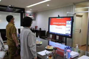 TEROPONGNUSANTARA – Pagi ini diruang kerjanya Walikota Manado mengikuti Video Conference bersama Mendagri, Ketua KPK, Kepala LKPP dengan kepala Daerah dan Ketua DPRD Provinsi, Kabupaten/Kota. Senin (24/01/22)