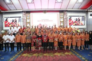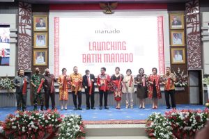Acara dilanjutkan dengan Launching Batik Manado yang ditandai dengan memukul ‘tetengkoren’ serta penyampaian narasi arti motif Batik Manado oleh Felix Panelewen yang merupakan staf khusus Wali Kota. Acara diakhiri dengan pagelaran Busana yang dilakukan oleh Ikatan Nyong dan Nona Manado.(Advetorial)
