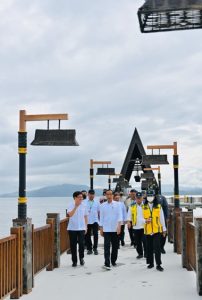teropongnusantara.com | Agenda hari ke-dua kunjungan Presiden Joko Widodo ke Manado diawali dengan mengunjungi Pulau Bunaken. Dalam kunjungan Jumat (20/01/2023) itu, Presiden yang akrab disapa Jokowi itu tampak mengenakan kemeja putih, celana kain hitam dan sepatu sneaker hitam, nampak sangat kasual.