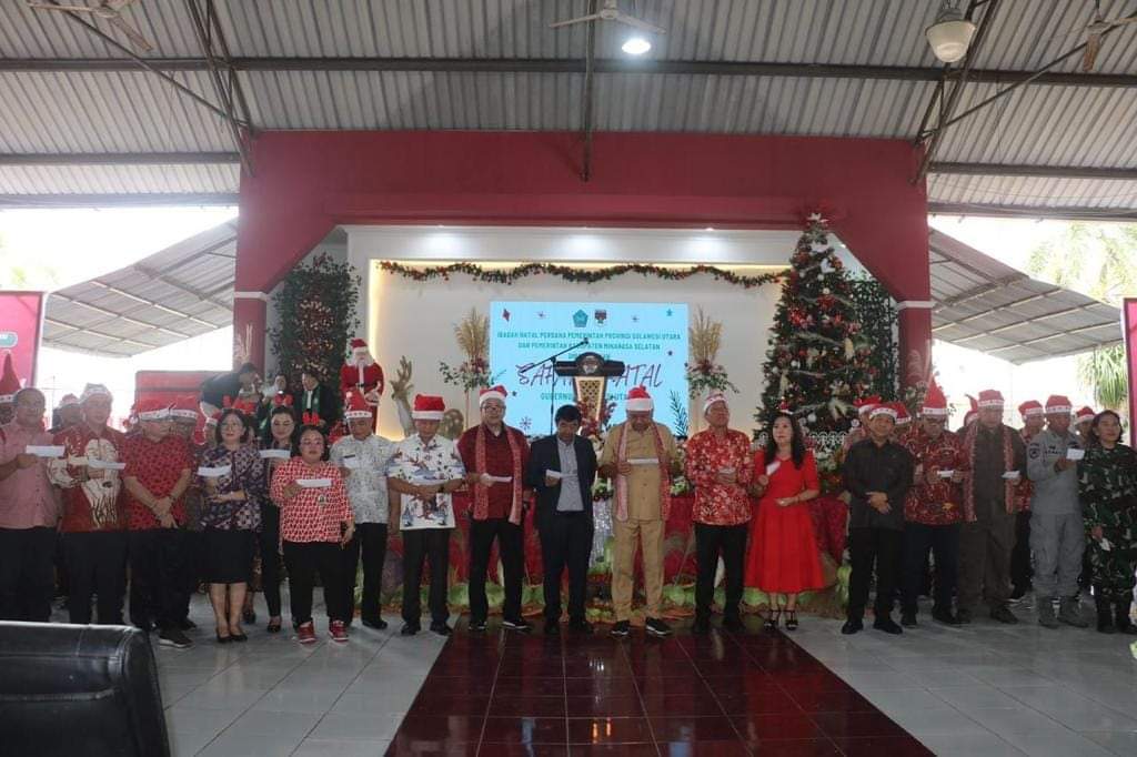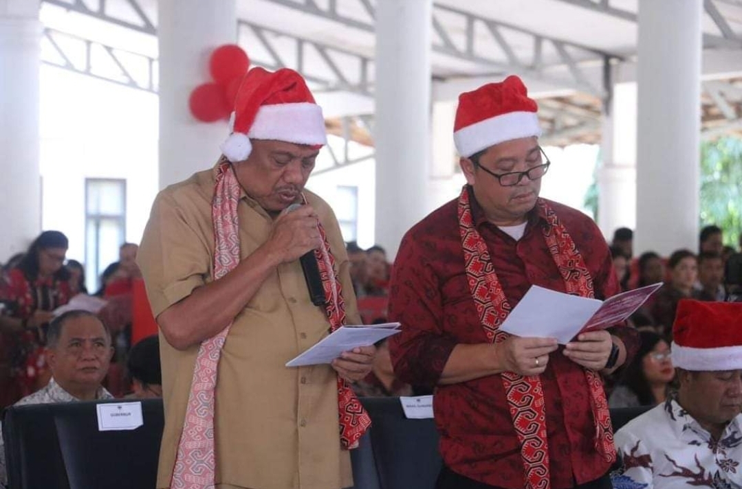 Gubernur Sulut Olly Dondokambey dan Wakil Gubernur Steven Kandouw bersama jajaran Pemprov Sulut melakukan safari natal perdana di Aula Waleta Kantor Bupati Minsl, Jumat (1/12/2023).