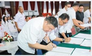 Setelahnya, acara dilanjutkan dengan penandatanganan perjanjian kinerja dan pakta integritas oleh Wali Kota, Sekretaris Daerah Kota Manado, Bapak Dr. Micler Lakat, S.H., M.H., bersama dengan para Asisten, Staf Ahli Wali Kota, Kepala SKPD, Kabag Setda Kota Manado, para Camat, serta Direktur RSUD dan RSKGM Kota Manado. (adve)