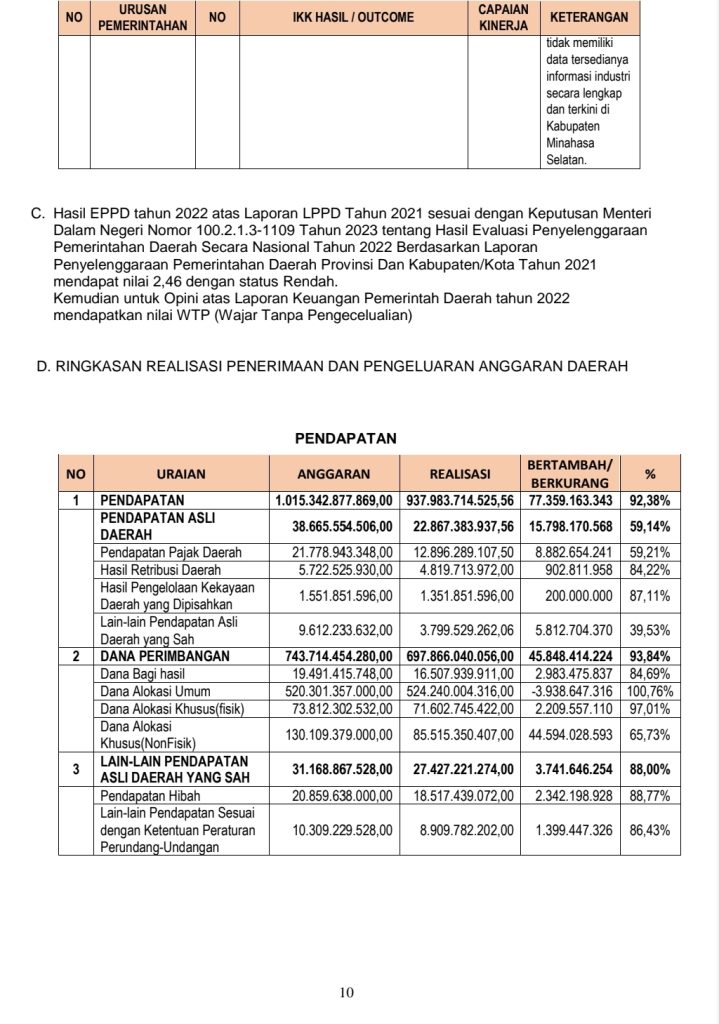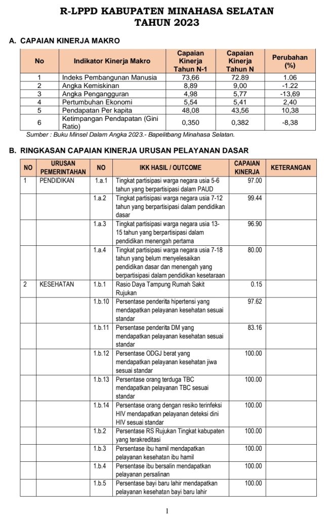 Berikut Ringkasan Laporan Penyelenggaraan Pemerintahan Daerah (RLPPD) Kabupaten Minahasa Selatan Tahun 2023 :