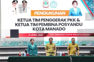 Wali Kota Manado, Andrei Angouw, mengukuhkan Ketua TP PKK dan Ketua Tim Pembina Posyandu Kota Manado dalam acara yang digelar di Aula Serbaguna Kantor Wali Kota, Senin (14/4).